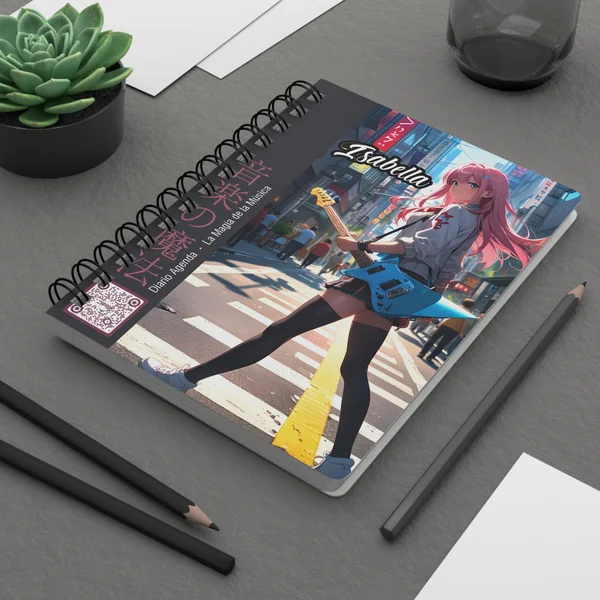 ¡Organiza tu vida y libera tu creatividad con la energía del J-Rock! Lleva a Isabella, la guitarrista de cabello rosa, contigo a todas partes con esta agenda única. Ideal para estudiantes, músicos y fanáticos del anime, esta libreta combina una planificación práctica con espacios para desatar tu lado artístico. La cubierta presenta a Isabella tocando su guitarra azul, caminando con actitud por las calles de Tokio, inspirándote a tomar cada día con confianza y ritmo. Más que una Agenda, es tu Compañera Creativa: